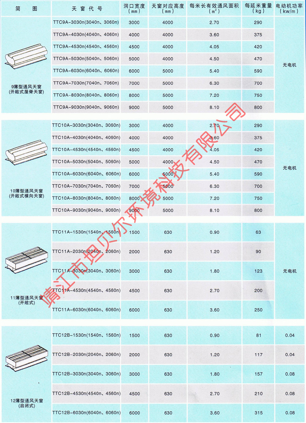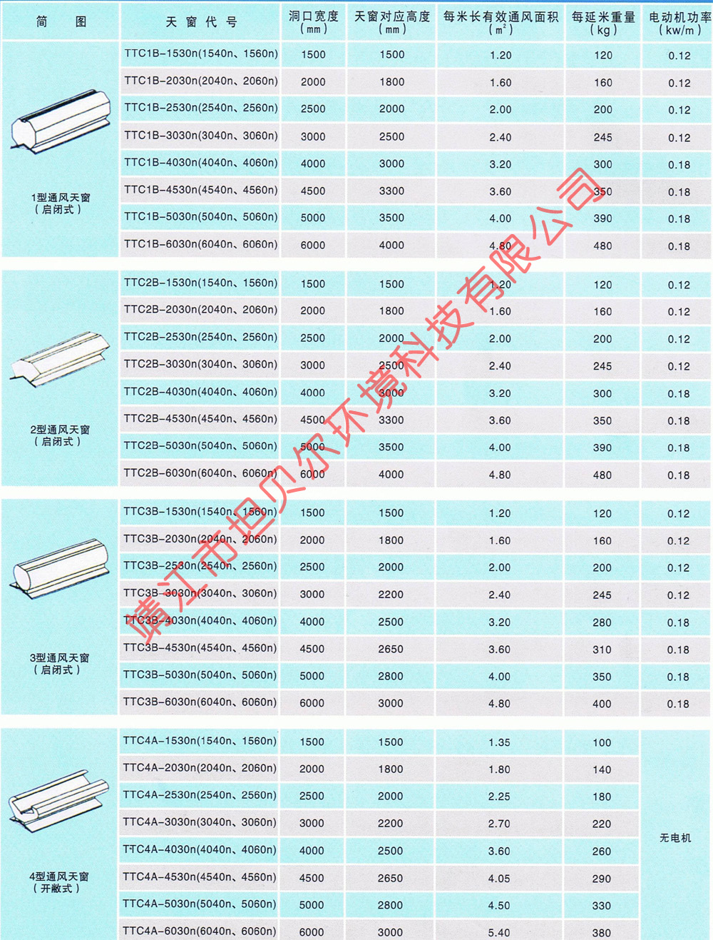 TC型通风天窗(通风器)单位长度排风量参考表-1